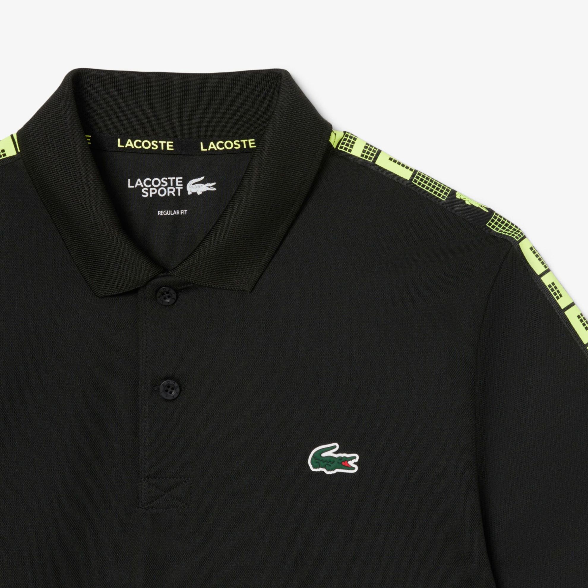 Ένα πόλο μπλουζάκι με το χαρακτηριστικό στυλ της Lacoste, ειδικών στον αθλητισμό και τη μόδα από το 1933. Κατασκευασμένο από άνετο, εμβληματικό πλεκτό ύφασμα πικέ με τεχνολογία Ultra Dry που απομακρύνει την υγρασία, με έντονες ρίγες με λογότυπα, κροκόδειλο και μοτίβα εμπνευσμένα από ρακέτες τένις. Έντονο αθλητικό στυλ.