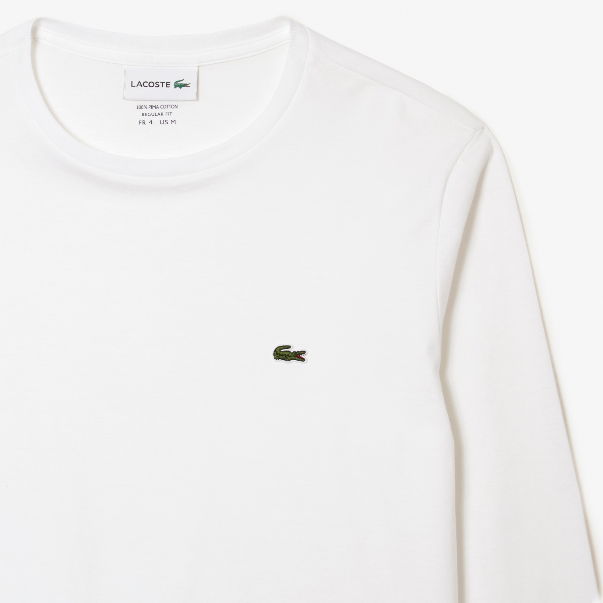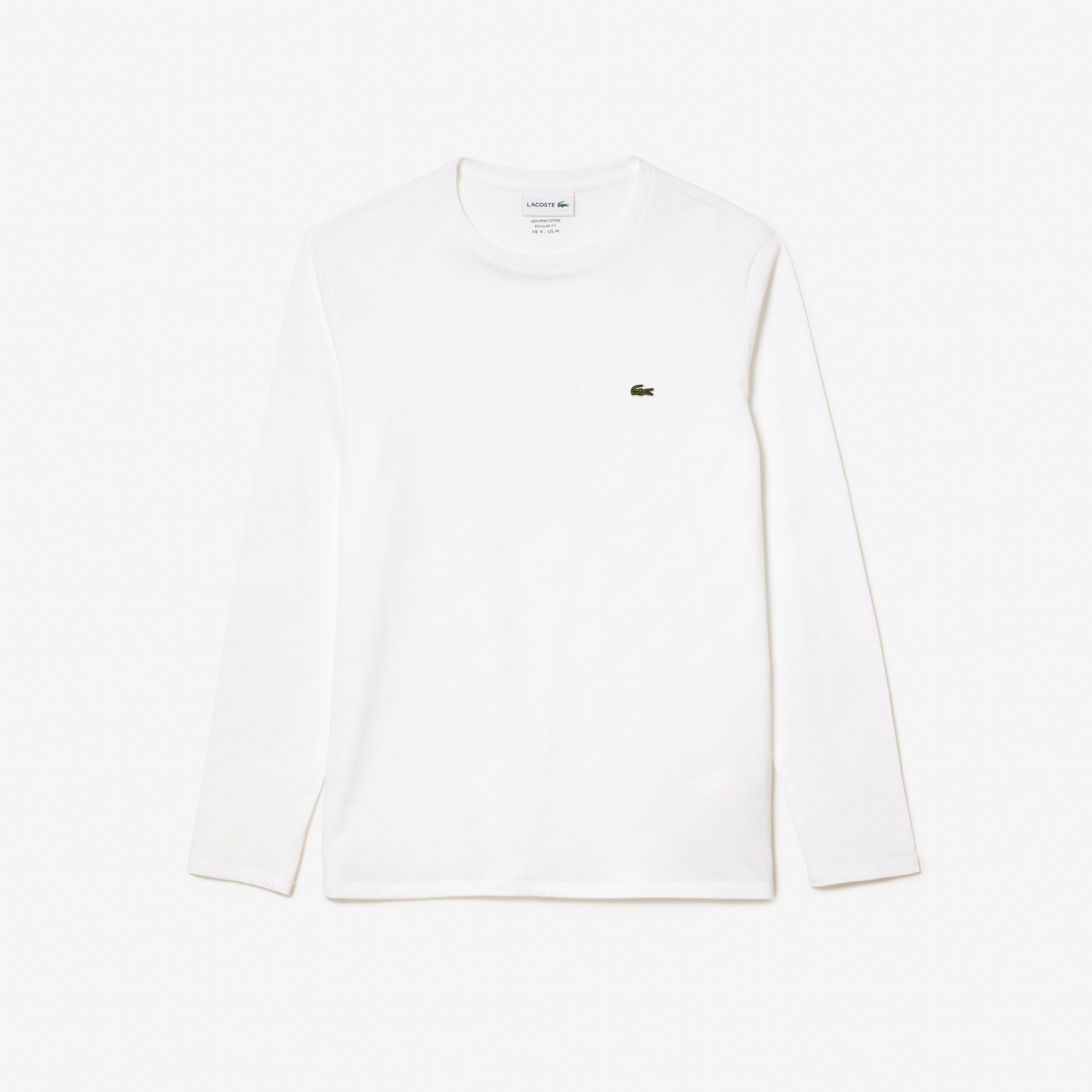 Βαμβακερό ανδρικό μακρυμάνικο t-shirt με κεντημένο πράσινο κροκόδειλο και ribbed λαιμόκοψη. Το premium jersey το καθιστά ιδανικό για κάθε περίσταση.