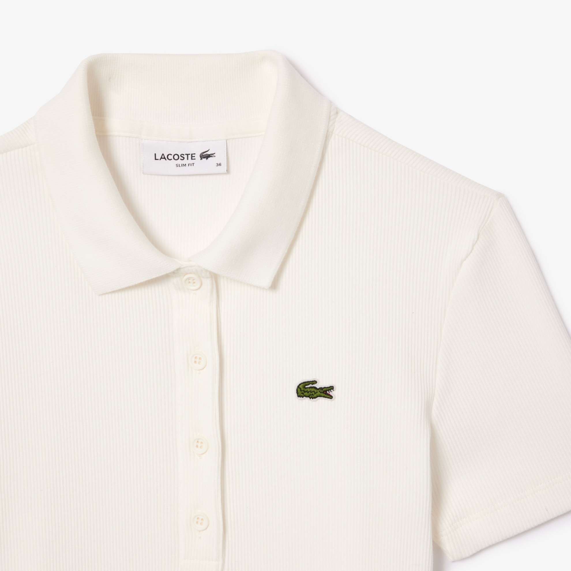 Η μπλούζα polo L.12.D, η γυναικεία εκδοχή της μπλούζας πόλο που εφευρέθηκε από τη Lacoste το 1933, παρουσιάζει τη ribbed έκδοση. Με κομψά προσαρμοσμένη ζώνη στη μέση και βαθιά πατιλέτα με κουμπιά, οι iconic κώδικες L.12.D διατηρούνται, με το πρόσθετο πλεονέκτημα ενός άνετου, casual υφάσματος.