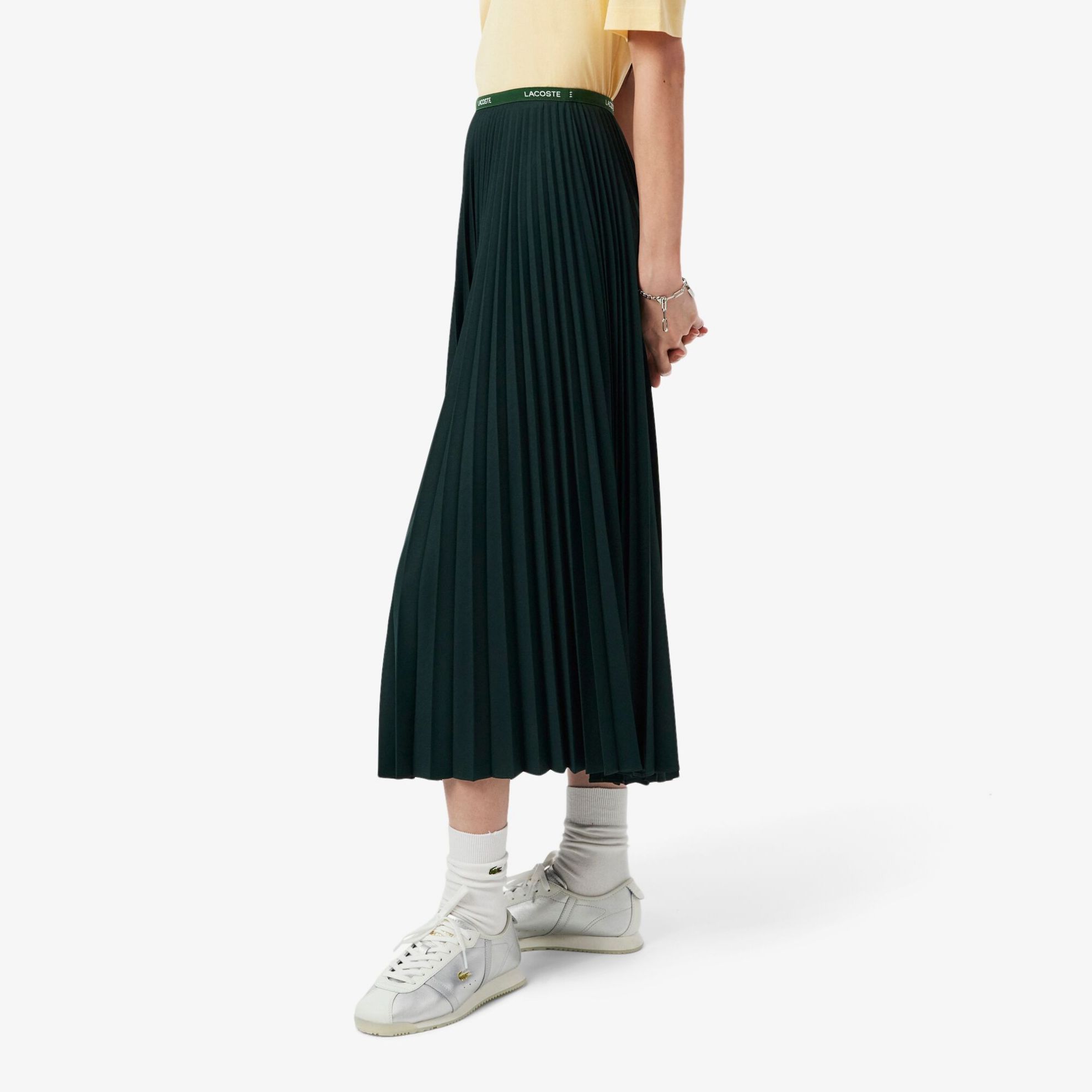 Η μόδα συναντά την αθλητική ένδυση σε αυτή την απαραίτητη φούστα Lacoste, καρπό 90 ετών δημιουργικής εμπειρίας. Ο μακρύς, ρευστός σχεδιασμός διαθέτει εμβληματικές πιέτες εμπνευσμένες από την κληρονομιά του τένις της μάρκας μας. Ένα διαχρονικό, κομψό σχέδιο που ολοκληρώνεται με ελαστική μέση με λογότυπο σε αντίθεση.